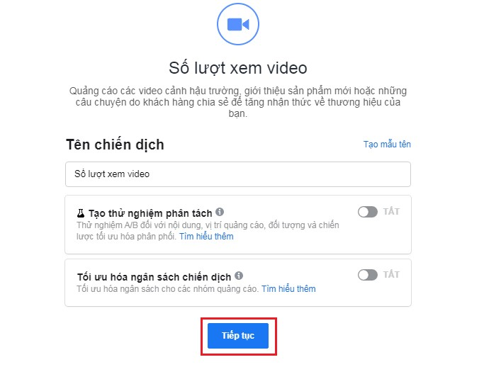 - Đặt tên chiến dịch rõ ràng (ví dụ: Video Launch Sản phẩm A – Tháng 5/2025) để thuận tiện theo dõi.